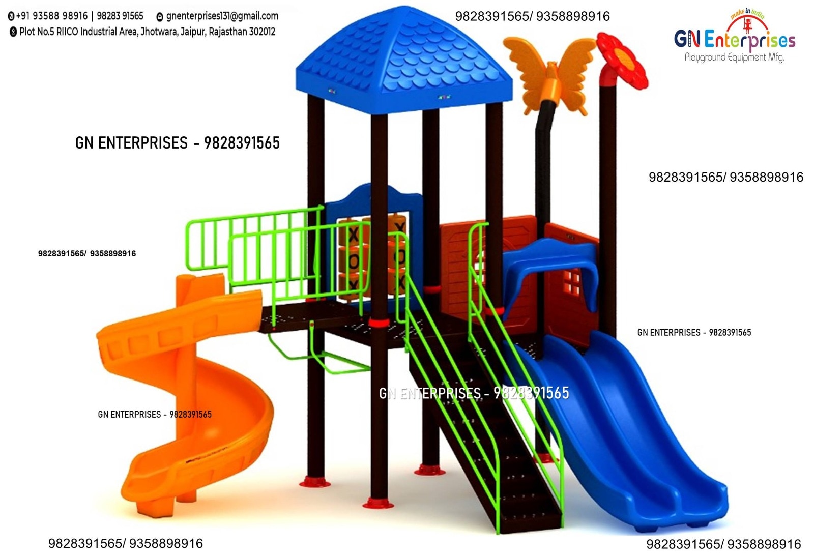 GN Enterprises, a premier manufacturer and supplier of high-quality outdoor play equipment based in Jaipur, Rajasthan, India, is distinguished by its steadfast commitment to safety and quality.  We guarantee that each product, encompassing multi-play stations, children's playsets, outdoor fitness equipment, playground equipment, toys, slides, swings, climbing structures, and all other types of outdoor play equipment, offers a secure and engaging play environment for children.